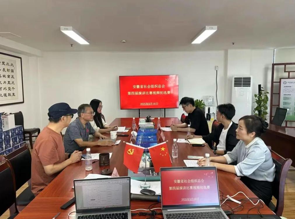9 月 16 日上午,由安徽省社会组织综合党委指导,安徽省社会组织总会、安徽省健康文化旅游产业促进会、安徽省演讲学会、安徽三联学院共同主办,美而特集团冠名的 “美而特杯” 第四届安徽省社会组织主题演讲比赛视频初选,在促进会会议室圆满完成。