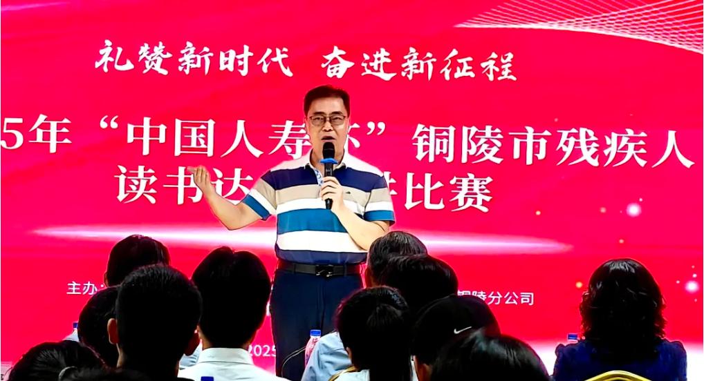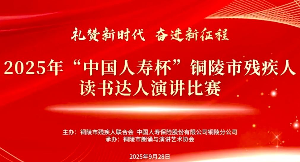 9月28日,“礼赞新时代 奋进新征程”2025年“中国人寿杯”铜陵市残疾人读书达人演讲比赛圆满落幕。本次比赛由铜陵市残疾人联合会与中国人寿保险铜陵分公司共同主办,铜陵市朗诵与演讲艺术协会承办。