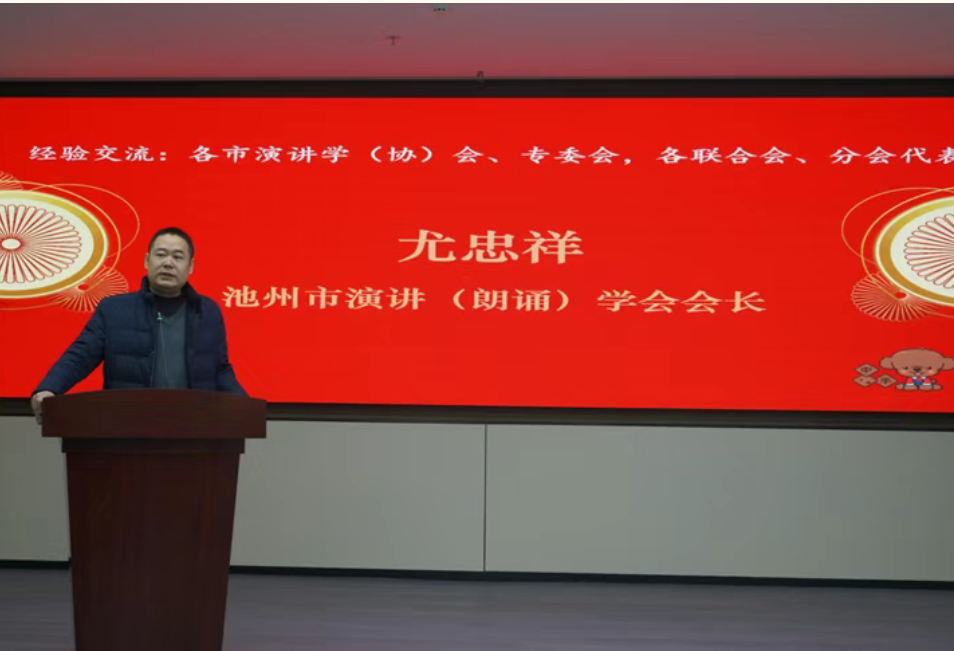 池州市演讲(朗诵)学会会长尤忠祥围绕演讲在生活、工作、学术中的运用,以及如何有效借助外界资源推动学会可持续发展进行了分享。